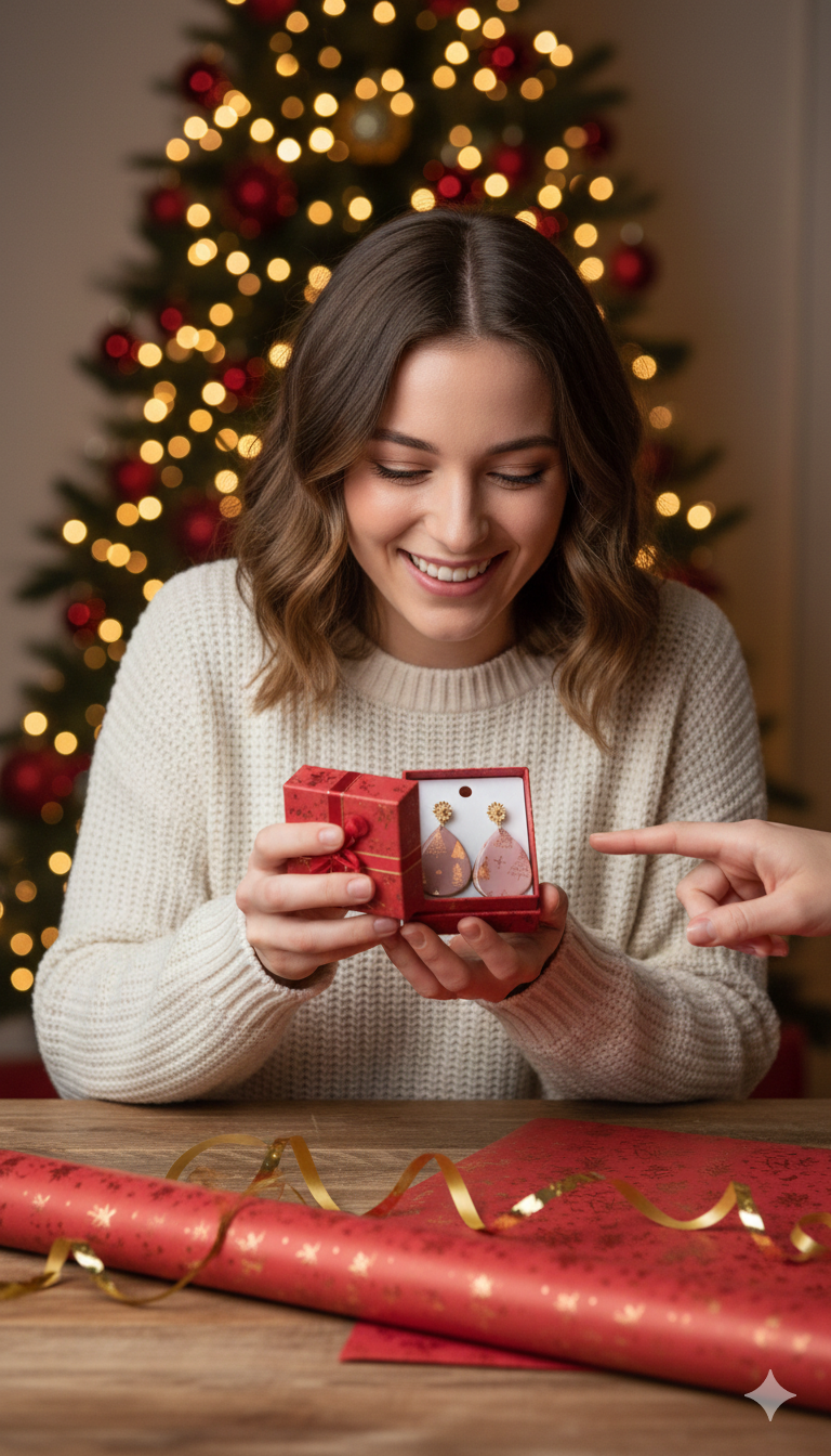 Handcrafted polymer clay earrings featuring a sophisticated blush-pink base adorned with a shimmering copper Christmas tree motif, topped with an antique-gold floral stud. These lightweight pieces are engineered for comfort during extended wear, with nickel-free hardware ensuring skin-friendly elegance. The glossy sealed finish provides lasting durability while maintaining a polished aesthetic. Perfect for adding festive charm to your seasonal collection without compromising on quality or wearability.